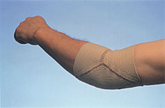 Elastic support with verticalwise compression. Elbow support with protection pad for sports. Protects smoothly. Elbow support with a patella adhering to the Mafra fabric.